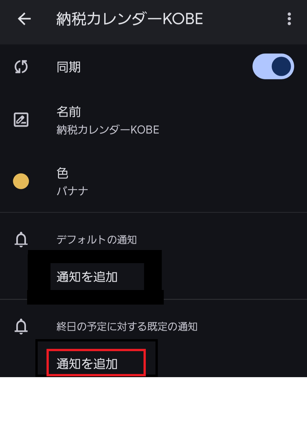カレンダーを登録した後、納期限前にお知らせを受け取るには、通知設定を行ってください。
