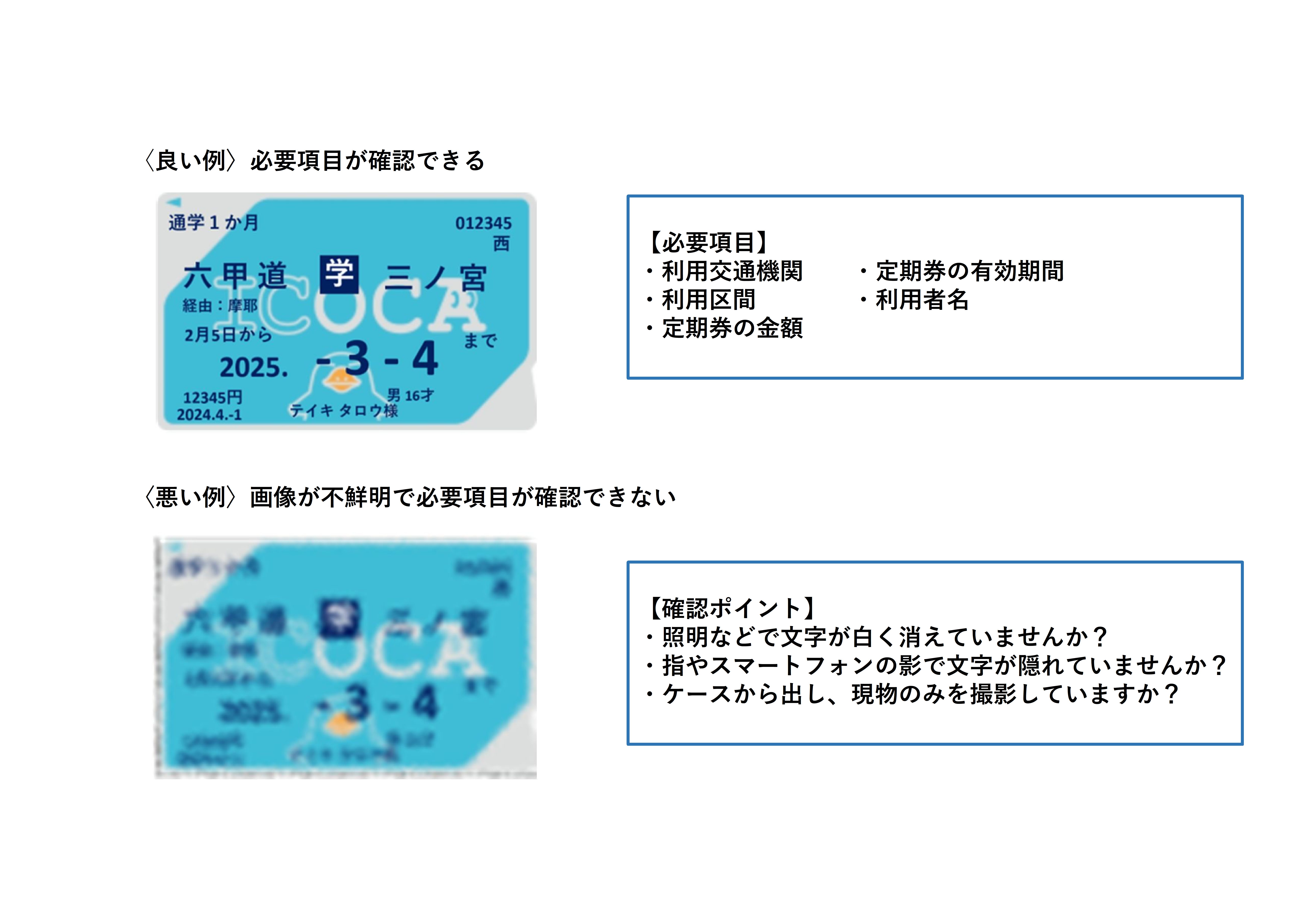 通学定期券の写し(印字がはっきりと確認できるもの)