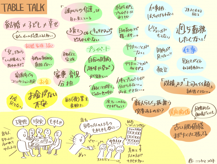 「キャリアの話は言語化しやすいけど、話していくと、ライフの話の方が盛り上がって、みんなそちらでの悩みが多いと分かった」