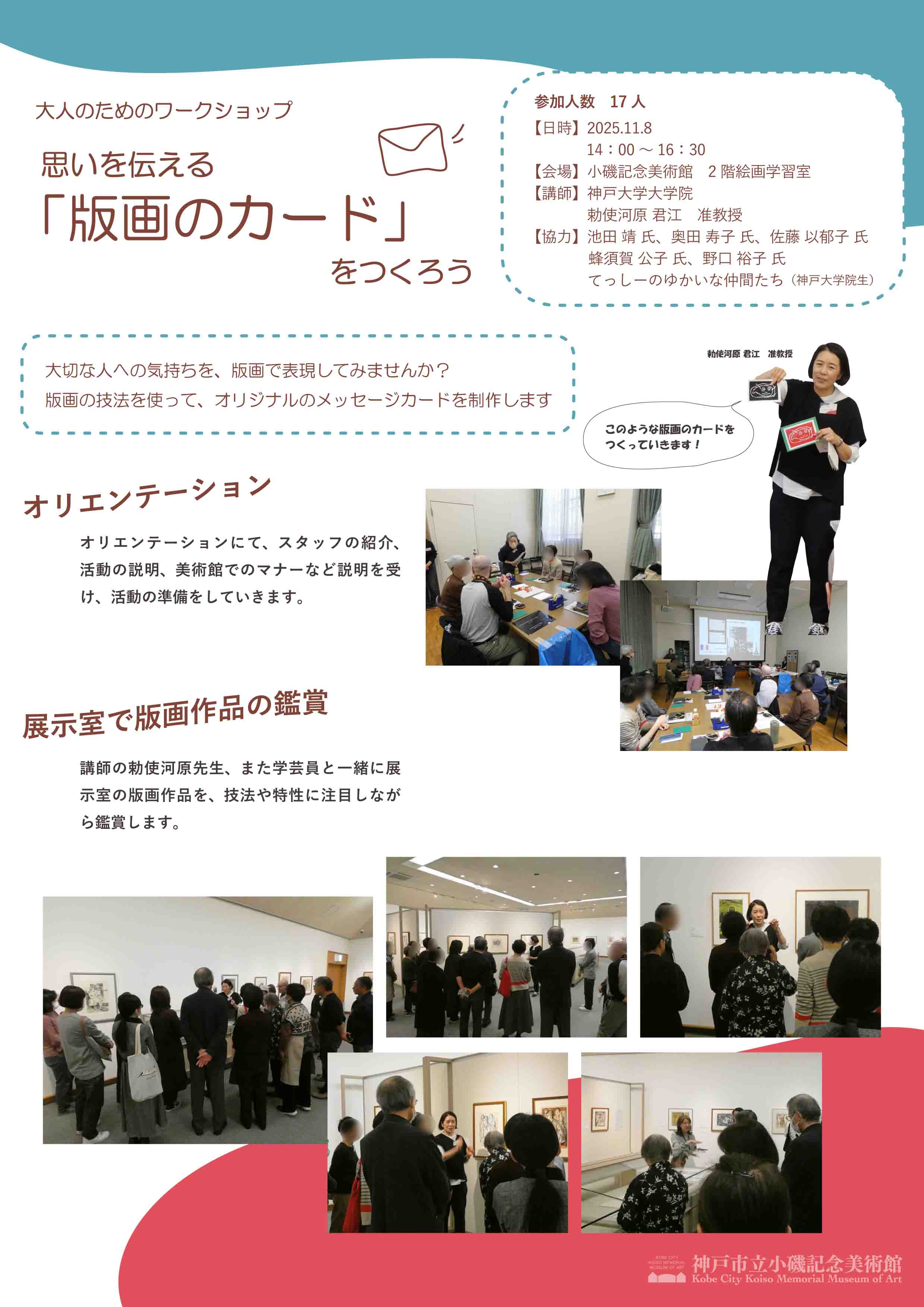 ホーム > 文化・スポーツ > 文化施設 > 神戸市立小磯記念美術館 / KOISO MEMORIAL MUSEUM OF ART > 神戸市立小磯記念美術館:普及活動/Education > 神戸市立小磯記念美術館:大人のためのワークショップ