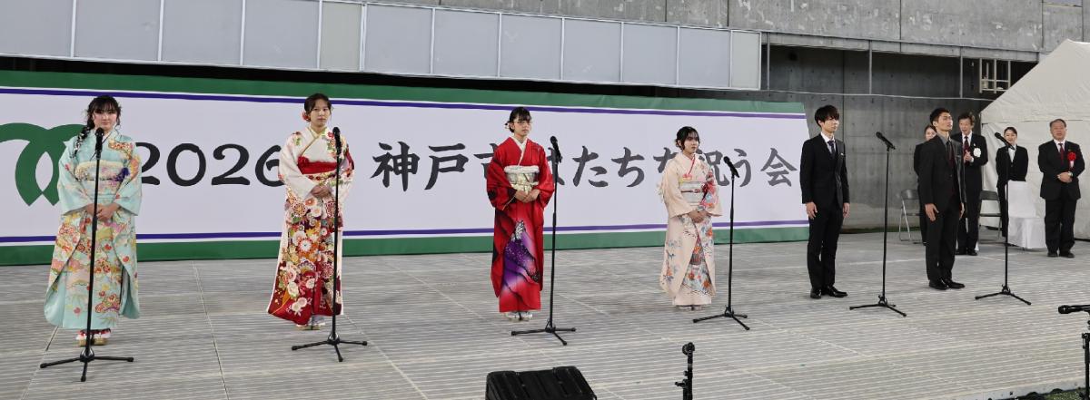 流通科学大学和太鼓部による特別演奏で、はたちのみなさんへ、力強く心に響くエールを送っていただきました。