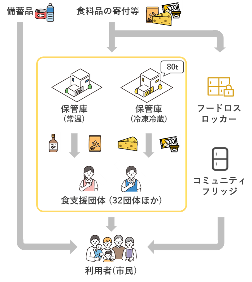 食材費等支援を通じて、市民の皆さまに安価な食品を提供する「神戸フードサポート」を中心に支援を展開します。