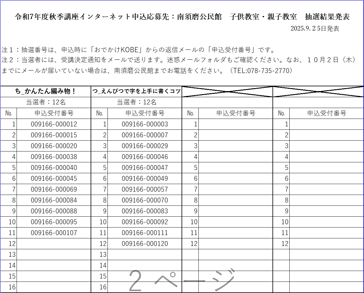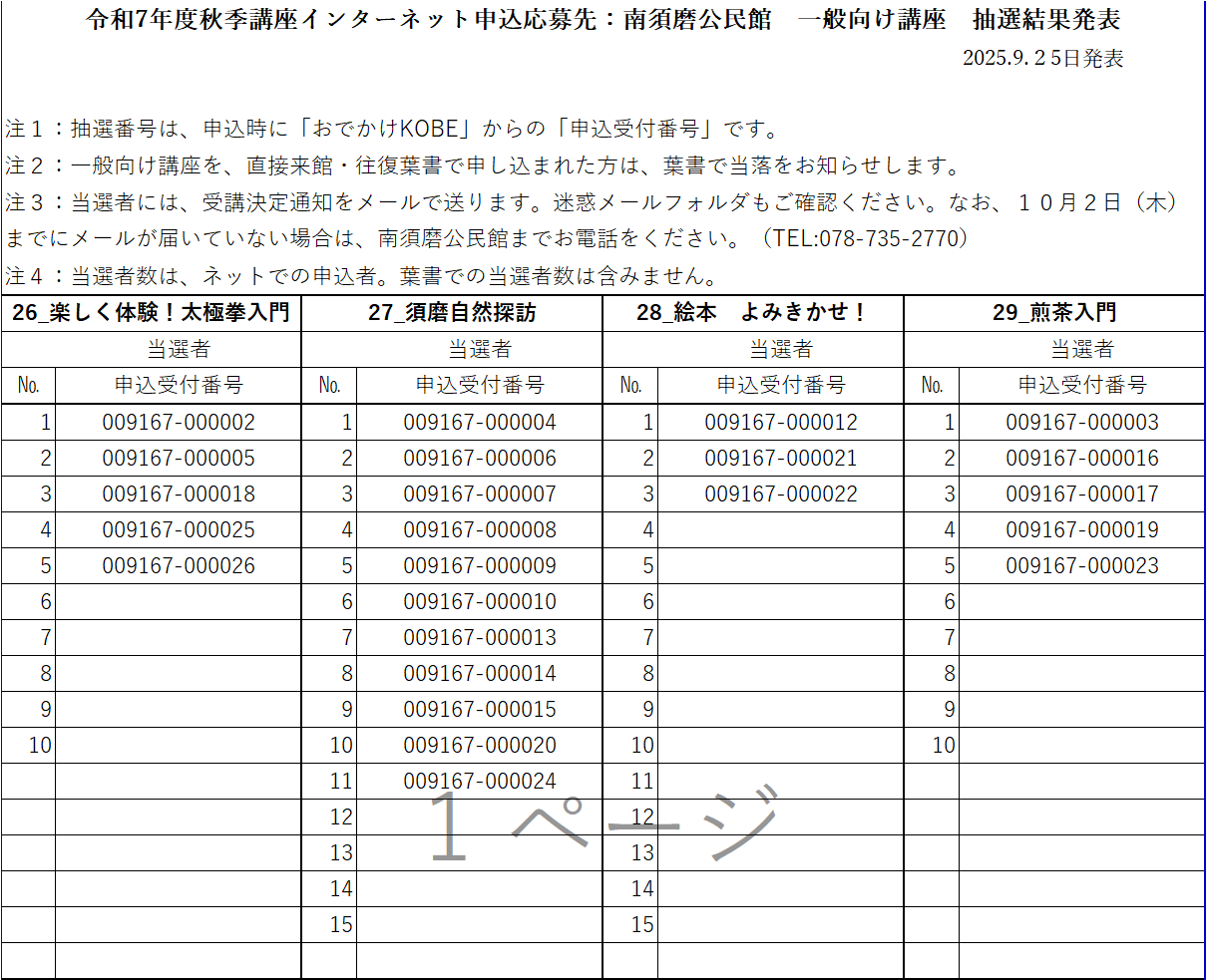 南須磨公民館(078-735-2770)へお問い合わせください。